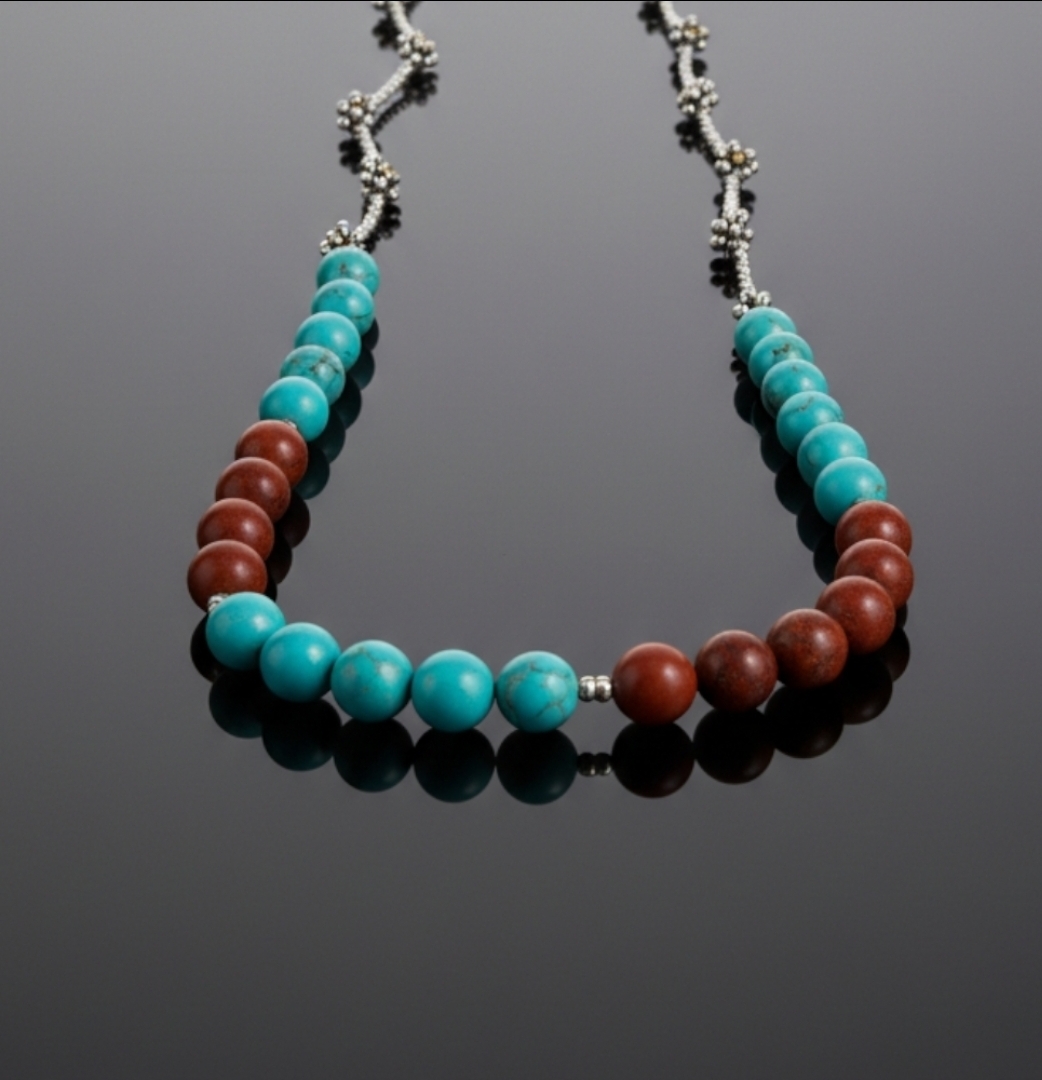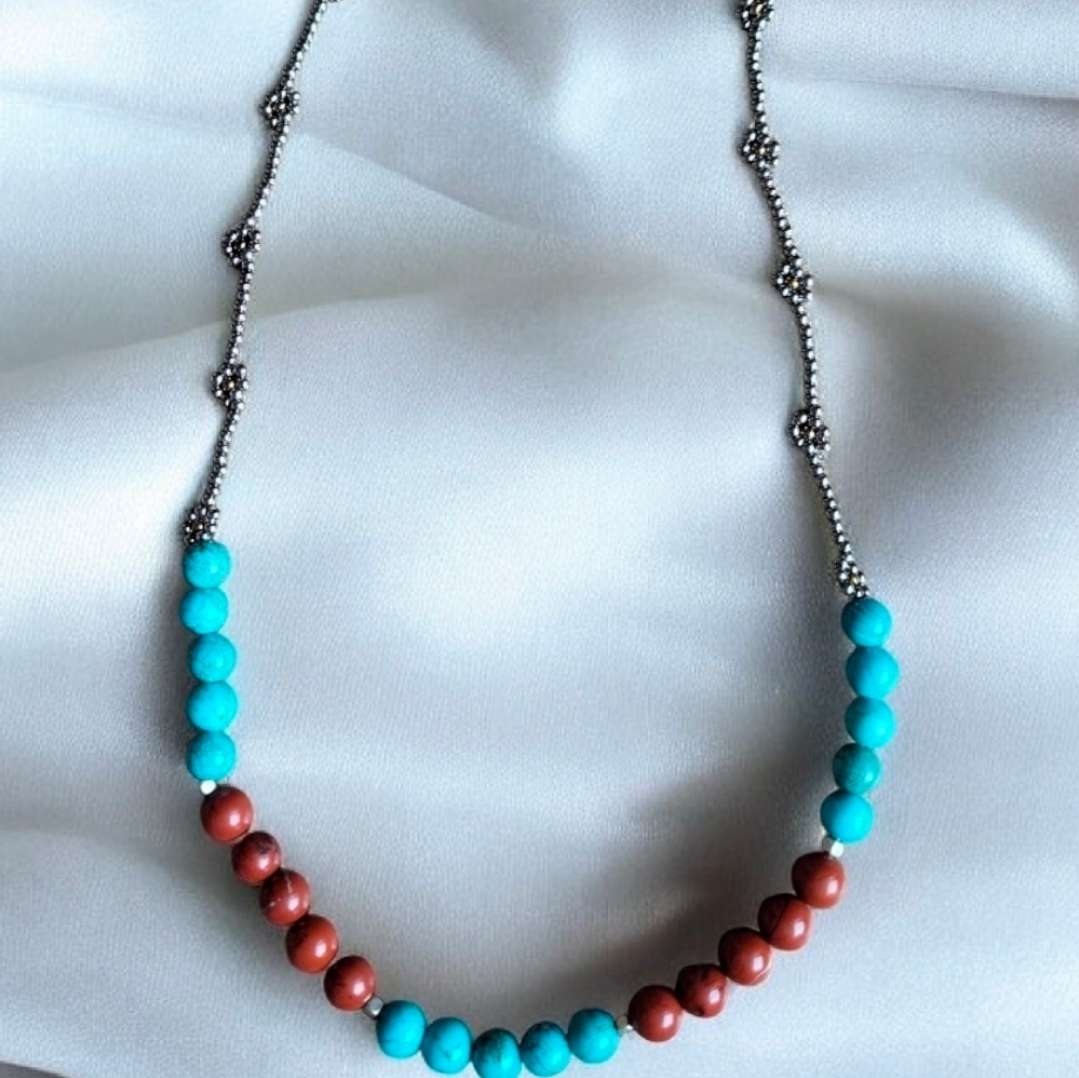 Jasper ve Firuze Taşlı El Yapımı Gold Boncuklu Kolye | Doğal Enerjinin Cazibesi