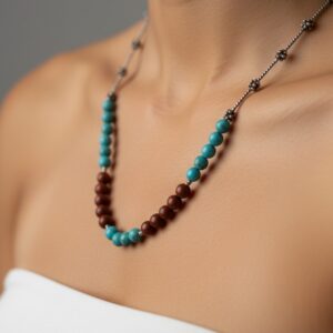 Her bir parça tamamen el işçiliğiyle hazırlanır; doğaltaşların kendine özgü renk geçişleri, kolyeye benzersiz bir karakter kazandırır.